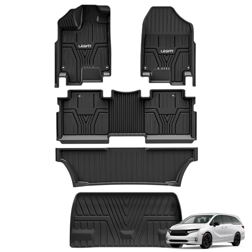 Specification: LASFIT Liners and Cargo Mat Fit for Honda Odyssey 2018-2024 Mini Passenger Van, All Weather TPE Car Floor Mats,1st & 2nd & 3rd & Trunk Area Full Set