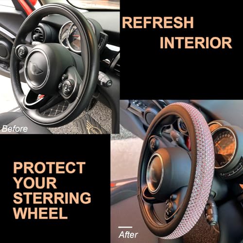 Specification: PINCTROT Bling Bling Comfy Steering Wheel Cover with Jumbo Crystal Rhinestones, Anti-Slip Diamond Leather, Universal 14.5-15 Inch (Pink)
