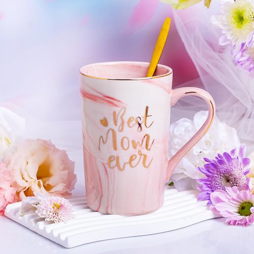 [Birthday Gifts for Mom ]đź’–Surprise your mom on her special day with this beautifully curated gift box that includes a pink marble ceramic mug, soy wax candle, hand cream, scented soap, make-up bag, and bath boom. All these comes in an elegant package, not need to repack.