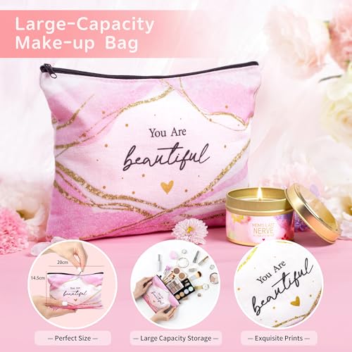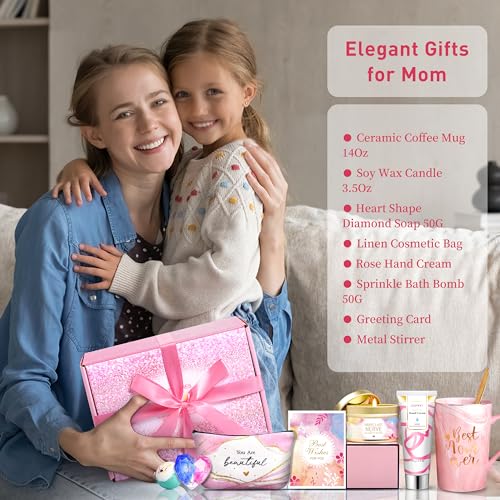Gifts for Mom Gifts Basket, Mother’s Day Gifts for Mom Birthday Gifts Set Include 14Oz Ceramic Mug, Hand Cream, Soy Wax Candle, Bath Bomb Scented Soap Make-up Bag