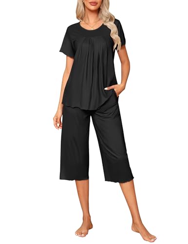 Ekouaer Women’s Pajama Sets Short Sleeve Sleepwear Top and Capri Pants Soft Pjs 2 Piece Loungewear with Pockets
