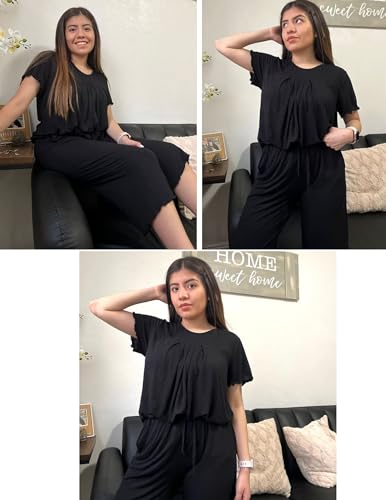 Specification: Ekouaer Women’s Pajama Sets Short Sleeve Sleepwear Top and Capri Pants Soft Pjs 2 Piece Loungewear with Pockets
