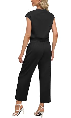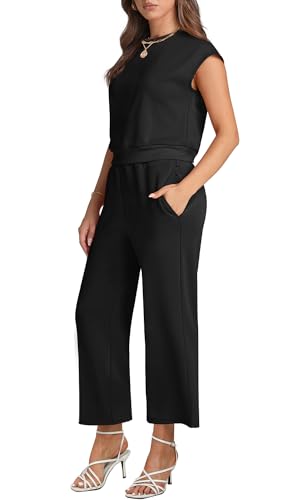 WIHOLL Two Piece Outfits for Women Summer Lounge Sets Cap Sleeve Top Wide Leg Pants Set Casual