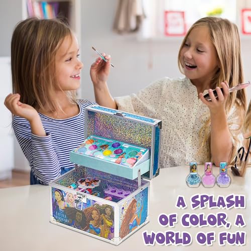 Little Mermaid Train Case Beauty Set, Kids Makeup Kit for Girls, Real Washable Toy Makeup Set, Play Makeup, Pretend Play, Party Favor, Birthday, Toys Ages 3 4 5 6 7 8 9 10 11 12