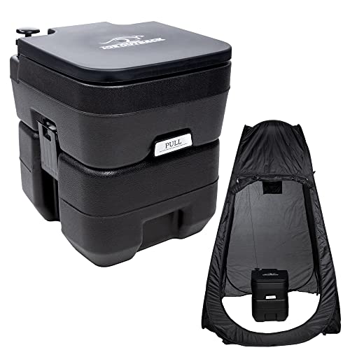 Camping Toilet w/Privacy Tent – 2.5 Gallon Fresh Water Camp Toilet for up to 50 Clean Flushes – Odorless & Heat Resistant Portable Camping Toilet – PE Camping Potty w/ 5.3 Gallon Waste Tank