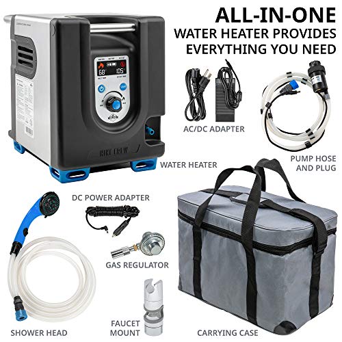 Specification: Hike Crew Portable Propane Water Heater & Shower Pump w/Built-in Battery | Compact Outdoor Cleaning & Showering System w/LCD, Safety Shutoff & Carry Case, Instant Hot Water for Camping & Hiking