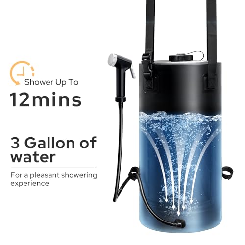 Portable Shower Bag-Capacity up to 3 gallons/11L with a large storage mesh Pocket, lets you enjoy a better and refreshing shower anywhere. compact and lightweight design that you can carry it in luggage, backpack, car trunk.