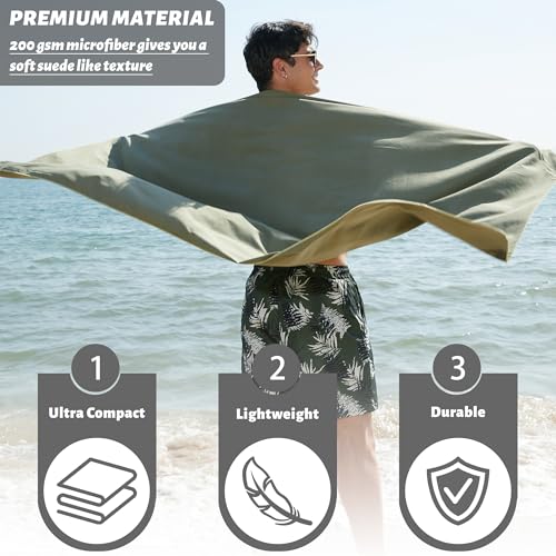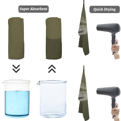 Rainleaf 2 Pack Microfiber Quick Dry Travel Towel, Super Absorbent Ultra Compact Lightweight Camping Towel for Gym, Hiking, Pool, Yoga – Army Green