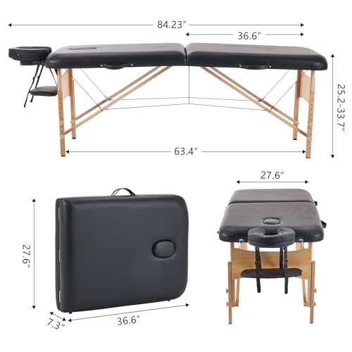 Specification: YOUNIKE Massage Table Lash Bed 2 Folding Portable Lightweight Adjustable Facial Cradle Spa Salon Therapy Beauty Esthetician Tattoo 28 Inches Wide Black
