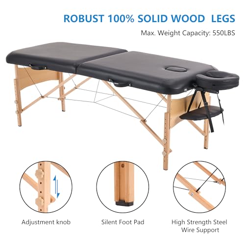 YOUNIKE Massage Table Lash Bed 2 Folding Portable Lightweight Adjustable Facial Cradle Spa Salon Therapy Beauty Esthetician Tattoo 28 Inches Wide Black