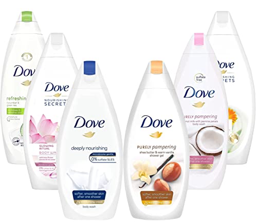 Specification: Dove Body Wash Variety Deeply Nourishing, Pampering Shea, Refreshing Cucumber,Purely Pampering Coconut Jasmine, Invigorating, Glowing Ritual, 25.3 Ounce, Pack of 6