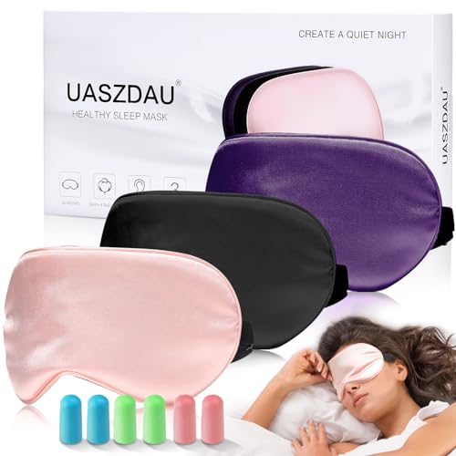 Sleep Mask Silk Eye Mask for Sleeping, Super Soft Blackout Eye Mask for Women Men, Side Sleeper Eye Covers for Sleeping with Adjustable Straps, Travel Eye Mask, 3 Pack