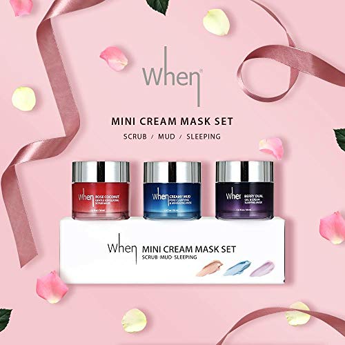 Revel in a mini spa on-the-go, at home, or When-ever you like with When Cream Mask Trio. Revel in a mini spa on-the-go, at home, or When-ever you like with When Cream Mask Trio. When Beauty Cream Mask Trio Set with Deep Pore Cleansing & Minimizing Creamy Mud Mask, Gentle Exfoliating Rose Coconut Scrub Mask, and Clinically-Proven Nourishing & Skin Renewal Berry Dual Gel & Cream Sleeping Mask with Unique Textures and Innovative textures the use of world’s purest ingredients and natural crucial oils.