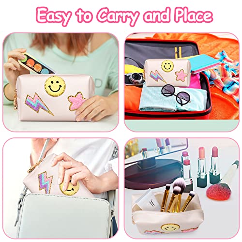 ✅【Exquisite Design】Each bag comes with professionally stitched patterns patches, you wouldn’t have to worry about them falling off. These trendy and lovely patterns (smile, lightning and star) that is sure to stand proud of your entire other cosmetic toiletry bags