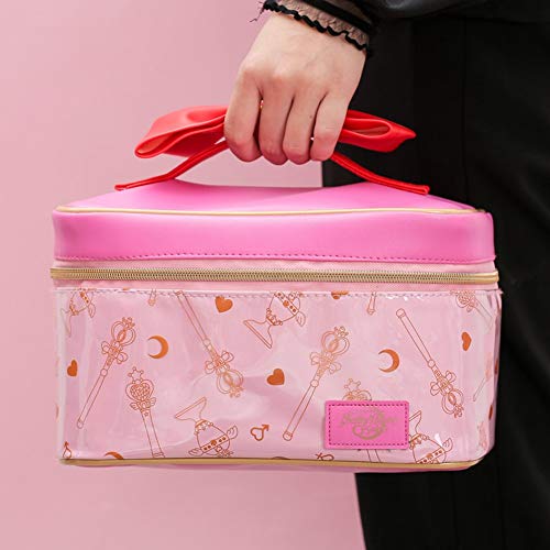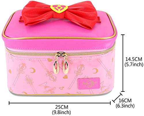 Multi-functional Sailor Moon theme pink go back and forth makeup bag, It is a easiest gift for ladies.