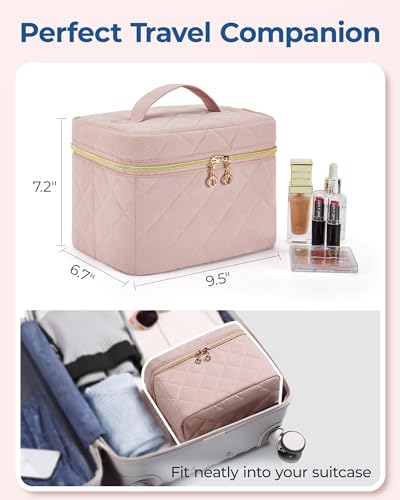 【Ample Storage 】Measuring 9.5 x 7.2 x 6.7 inches, this spacious commute makeup bag provides ample interior space to accommodate all of your beauty palettes, lip kits, foundation, and brushes. Full-sized makeup bottles can also be organized easily.