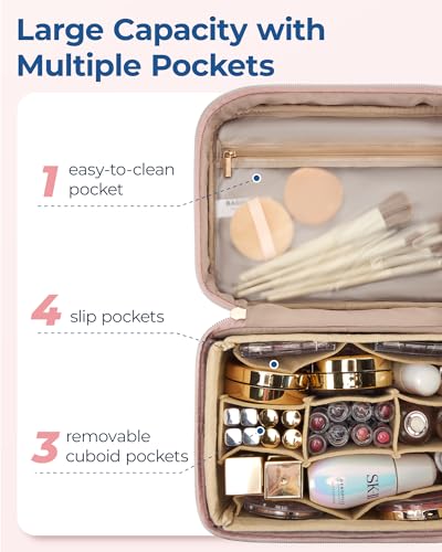 Specification: BAGSMART Makeup Bag Organizer Case with Detachable Insert, Large Travel Make Up Bag Cosmetic Bag for Women, Makeup Case for Essentials Travel-Size Toiletries Bottles, Conditioner, Brushes (Pink)