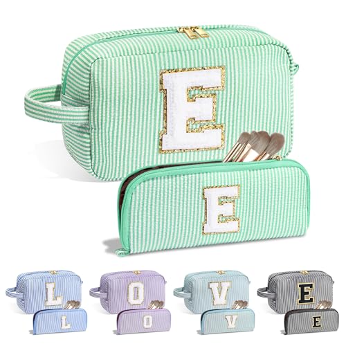 ❤【Unique Fashion Design】You are going to get 2 pack checkered makeup bag in total, the initial makeup bag is designed with more than one compartments, which can keep your cosmetics orderly and tidy. The front of the bag has a unique stitch chenille letter will not easy to drop. Suitable for your daily make-up and tools.The supernumerary initial monogram bag can hood your important items as a Trip toiletry bag or other function. It brings great convenience to your life.
