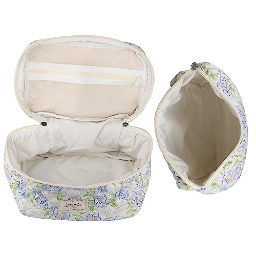 Specification: Cute Makeup Bag for Women(2 Pcs), Travel Cosmetic Bags, Quilted Coquette Aesthetic Floral Toiletry Organizer Bag (Blue Flower)