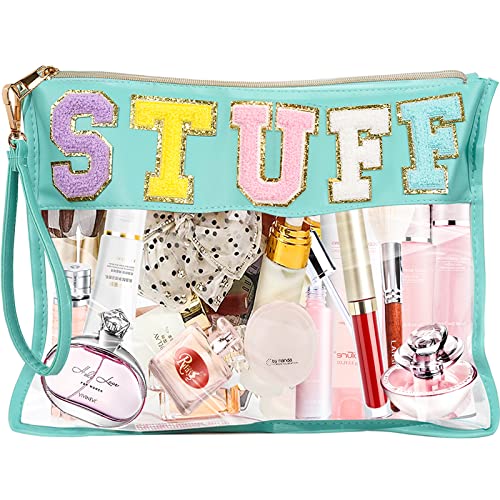 Specification: DILIBRA Oversized Chenille Letter Preppy Stuff Bag, Multi-purpose Clear Makeup Pouch Toiletry Bag with Zipper, Large Capacity Travel Cosmetic Bag Purse for Women Girls