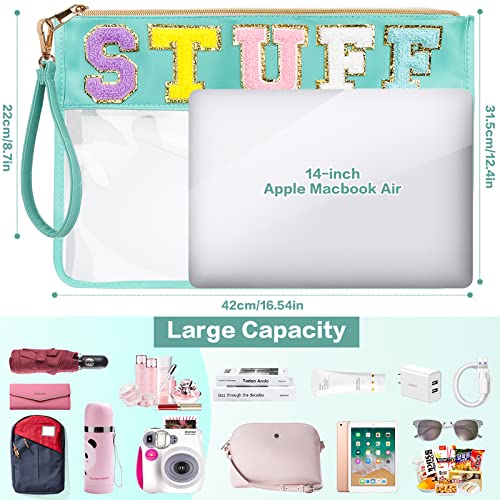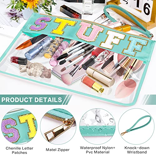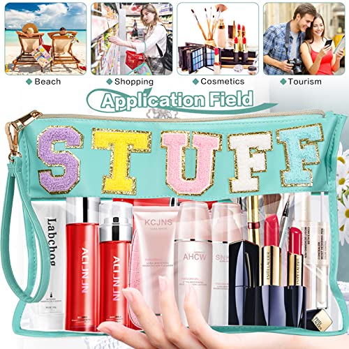 DILIBRA Oversized Chenille Letter Preppy Stuff Bag, Multi-purpose Clear Makeup Pouch Toiletry Bag with Zipper, Large Capacity Travel Cosmetic Bag Purse for Women Girls
