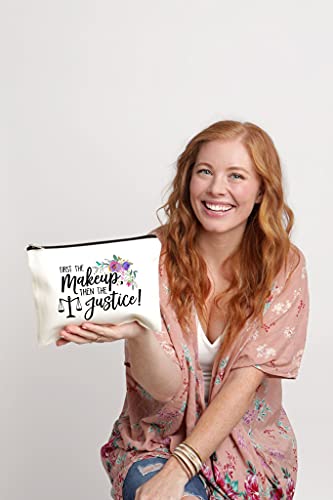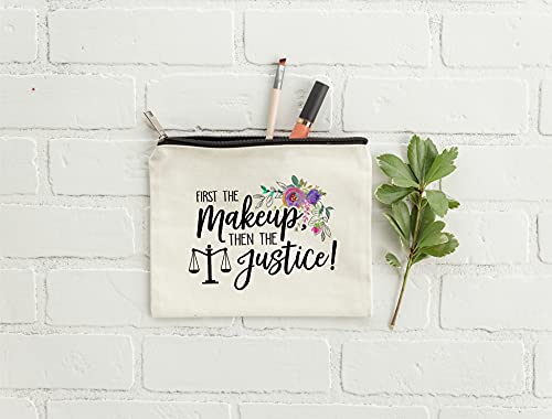 First the Makeup then the Justice Makeup Bag – Gift for Lawyer, Future Lawyer Gift, Cosmetic Bag