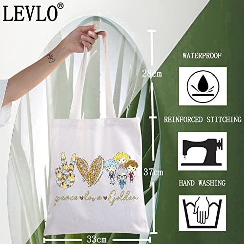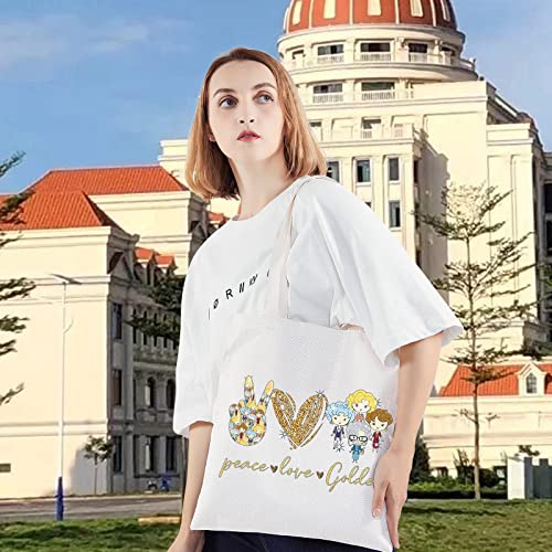 LEVLO Funny Golden Cosmetic Bag Golden TV Show Fans Gift Peace Love Golden Makeup Zipper Pouch Bag For Friend Family BFF(Peace Love Golden Tote)