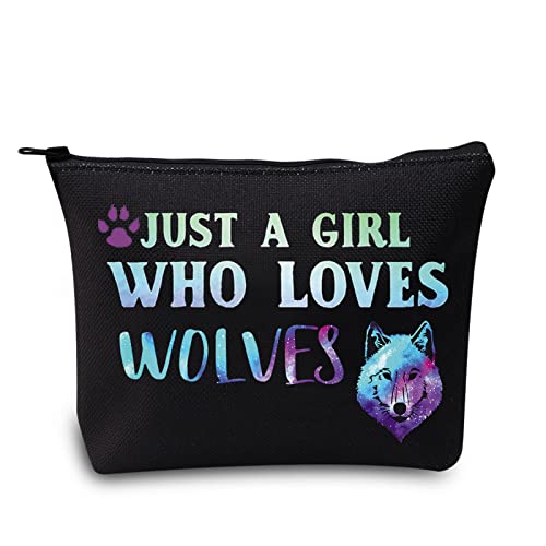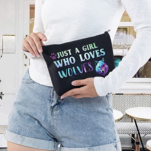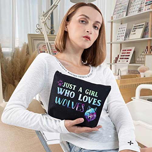 LEVLO Funny Wolf Cosmetic Bag Animal Lover Gift Just A Girl Who Loves Wolves Makeup Zipper Pouch Bag Wolf Lover Gift (Loves Wolves Black)