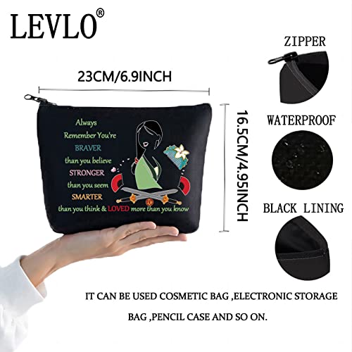 LEVLO Mu Lan Cosmetic Make Up Bag Mu Lan Fans Motivational Gift You Are Braver Stronger Smarter Than You Think Mulan Makeup Zipper Pouch Bag (Always Mu Lan Black)