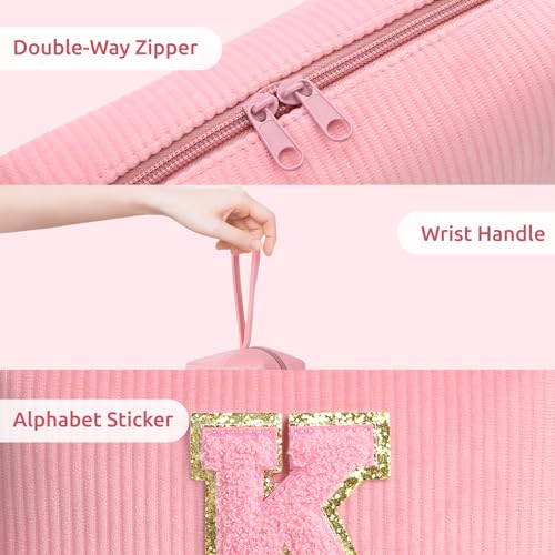 Specification: Makeup Bag, FUZVOL Small Cosmetic bag, Pink Corduroy Make Up Bag Organizer, Cute Preppy Stuff Personalized Gifts for Women,Travel Essentials Toiletry Bag,Small Makeup Pouch,Monogrammed Gifts, Letter L