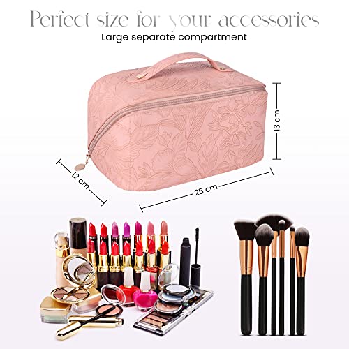Unique 180o Zipper Opening: This makeup bags with 180º large opening zipper gives easy get right of entry to to cosmetics in a hassle-free manner. Enjoy your favorite makeup routine at the go the use of this easy-to-carry makeup pouch.