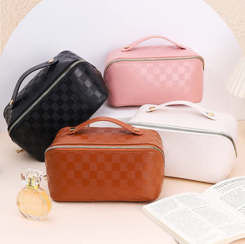 【NEW DESIGN】The travel makeup bag has a large opening design. It has a large capacity and the handle design makes it more comfortable to hold.