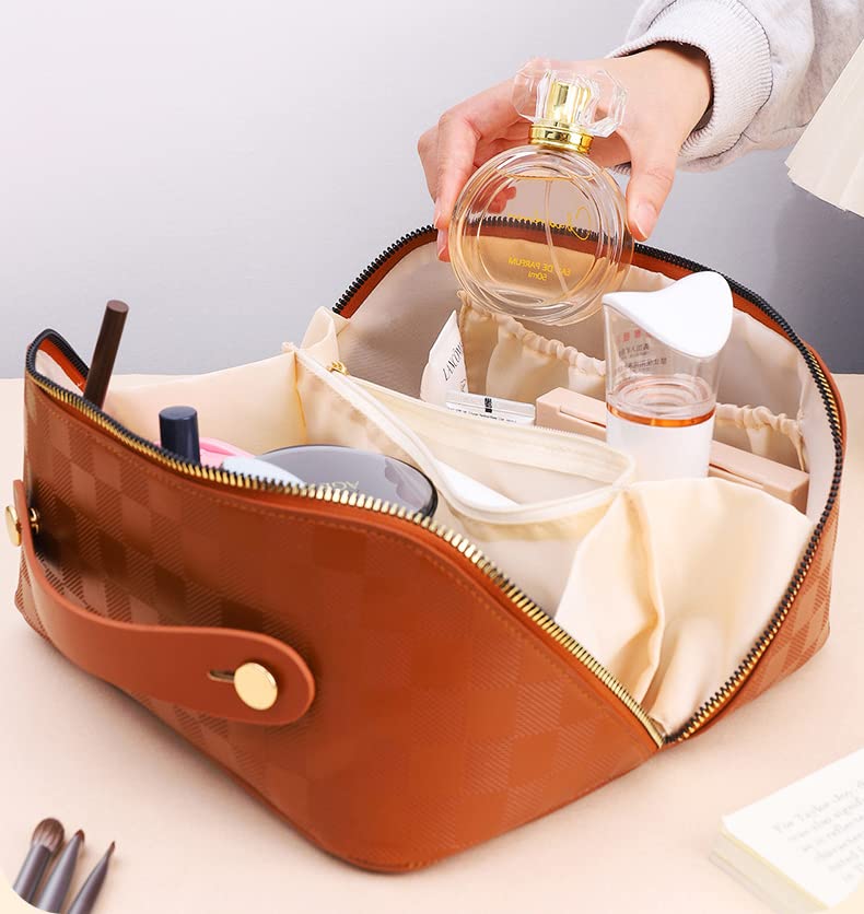 【NEW DESIGN】The travel makeup bag has a large opening design. It has a large capacity and the handle design makes it more comfortable to hold.