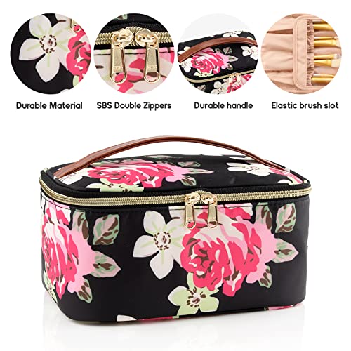 OCHEAL Floral Makeup Bag,Travel Makeup Organizer Bag, Large Capacity Cosmetic Bags For Women Large Travel Toiletry Bag Girls Traveling With Brush Slot And Divider