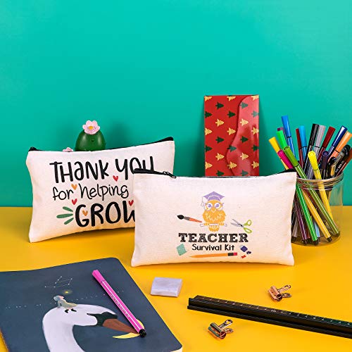PARBEE Teacher Gift Makeup Bag, 12PCS Canvas Cosmetic Pouch Zippered Toiletry Bags Case, Appreciation Gifts for Teachers