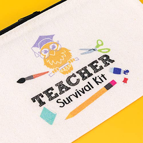 Design & Quantity: Includes 4 different pattern designs of respect and love to teachers, Thank you for helping me grow, Teacher Survival Kit, It takes a big heat to help shape little minds, Super Teacher; 3pcs of each pattern and totally 12pcs makeup bags