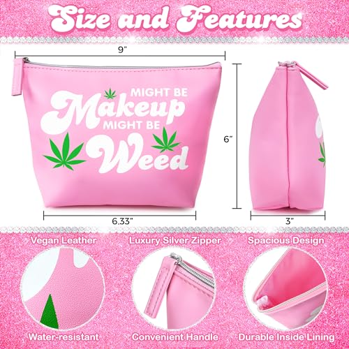 Vegan Leather Y2K 2000s McBling Makeup Bag – Pink Accessories Stoner Girly Girl Things Cute Stuff Marijuana Make Up Funny Birthday Mothers Day Mom Girls Sister Gift Best Friend Weed Gifts for Women