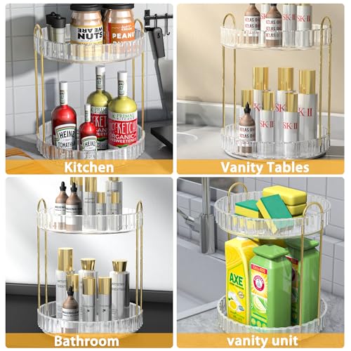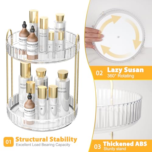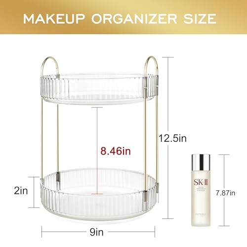 Specification: LAIWOO 360° Rotating Makeup Organizer, High-Capacity Bathroom Organizer Countertop Skincare Perfume Cosmetics Organizer (2 Tiers, Transparent)