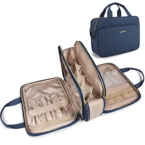 BAGSMART Large Toiletry Bag, Travel Makeup Organizer Water-resistant Makeup Cosmetic Bag Travel Bag for Accessories, Shampoo, Full Sized Container, Toiletries (Navy Blue, Large)