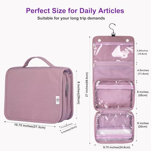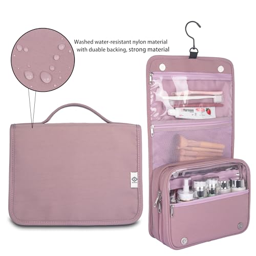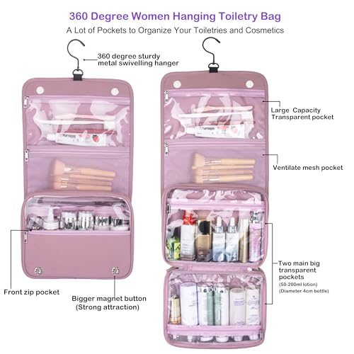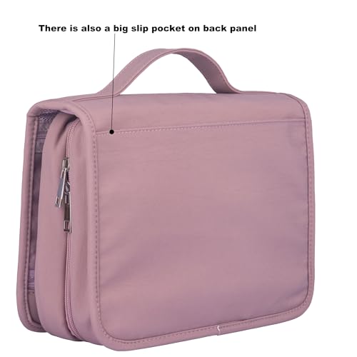 Eudora Hanging Travel Toiletry Kit Bag for Women, Waterproof Travel Organizer, Large Capacity Multi Pockets Cosmetic Weekender Bag with 360 Rotatable Hook (old pink)
