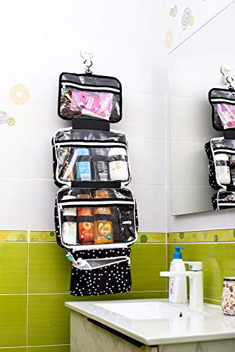 Specification: Large Travel Hanging Toiletry Bag For Women – Folding Bathroom Toiletry Cosmetic Organizer – XL Hanging Travel Bag For Full Size Toiletries (black polka dot)