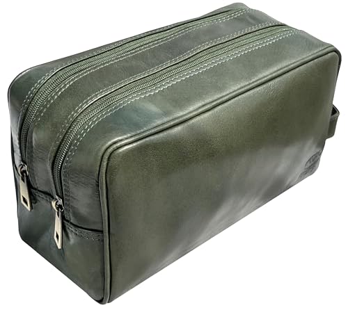 RUSTIC TOWN Leather Toiletry Bag for Men – Travel Shaving Dopp Kit – Bathroom Shower Toiletries Organizer – Leather Cosmetic Bag for Women (Emerald Green)