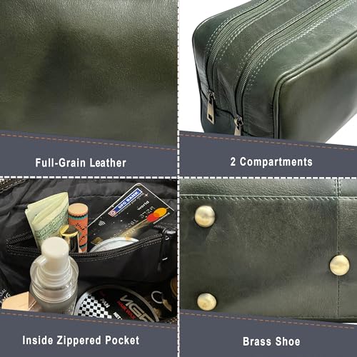 Specification: RUSTIC TOWN Leather Toiletry Bag for Men – Travel Shaving Dopp Kit – Bathroom Shower Toiletries Organizer – Leather Cosmetic Bag for Women (Emerald Green)