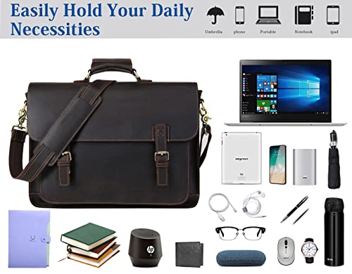 Leather Messenger Bag for Men 17.3 Inch Laptop Briefcase Full Grain Leather Business Travel Computer Office Bag