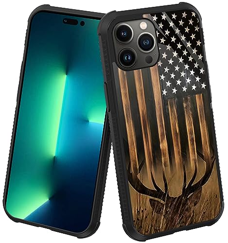 Case for iPhone 15 Pro Max,Deer American Flag Case for iPhone 15 Pro Max Design for Men Boys [Anti-Scratch] Non-Slip+Shockproof Rugged TPU Protective Case
