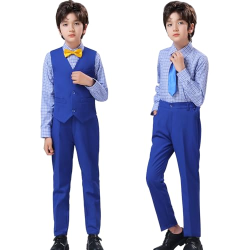 Boys’ Suits Formal Slim Fit Tuxedo Boys Vest and Pants Set for Teens Dress Clothes Wedding Outfit with Tie and Bow Tie