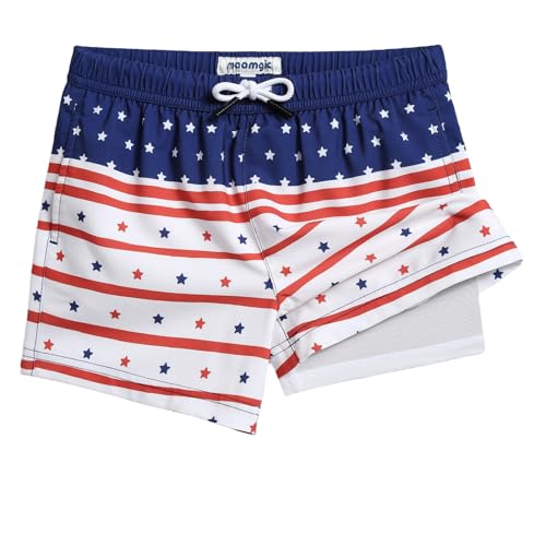 maamgic Boys Swim Trunks with Compression Liner Toddler Boy Swimsuit Quick Dry 4-Way Stretch Swimming Trunks