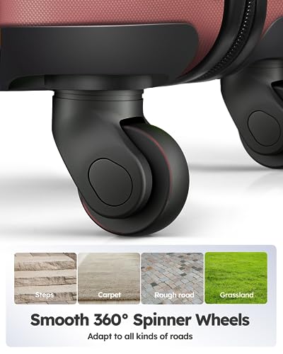 [ Smooth Spinner Wheels ] Checked Luggage and carry-on luggage feature an easily adjustable pull care for with a comfortable grip and smooth mulitfunctional 360° spinner wheels, ensuring effortless movement through airports.