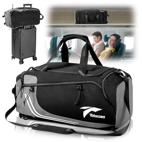 Tolaccea Gym Bag for Men, 45L Travel Duffel Bag, Weekender Bags, Carry on Backpack with Wet Pocket & Shoes Compartment, Sport Duffel Bag for Workout, Hiking, Cli