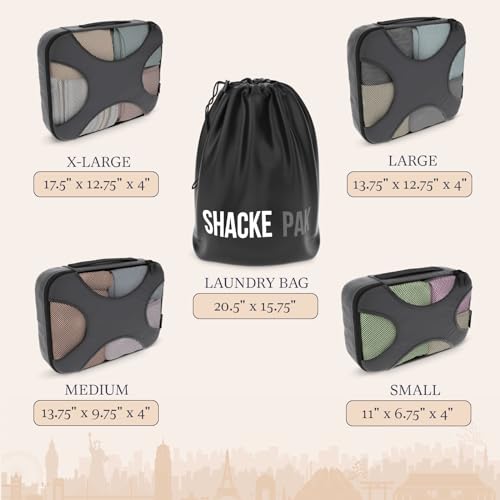Specification: Shacke Pak – 5 Set Packing Cubes – Travel Organizers with Laundry Bag (Dark Grey)